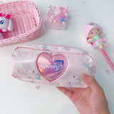 - This sweet pastel pink holographic cosmetic bag is both eye catching and practical!
