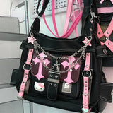 - Dive into the ultimate Y2K experience with this grunge-inspired messenger bag in classic black and pink hues.