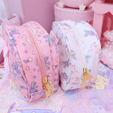 - So versatile, with secure zipper closure, and a vibrant fairy-kei inspired print, you can use these to store your pencils, crayons, make-up, knick-knacks, toys, and more!