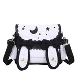 - With cute little ribbons & stars & moons on the end of the long bunny ears, this white little rabbit purse is simply the cutest!