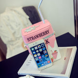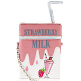 - Introducing the adorable "Strawberry Milk Handbag," perfect for those who adore a splash of kawaii in their wardrobe. This cute handbag features a pastel pink body with a playful strawberry milkshake design, complete with a faux straw poking out the top, making it a unique addition to your purse collection.