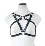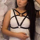 - This pagan inspired pentagram chest harness has several well placed vegan leather belted straps that adorn your decolage in a gothic fashion!