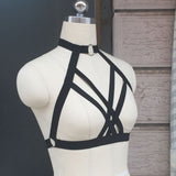 - This gothic little harness has a built in flattering choker and perfectly placed straps across your chest!