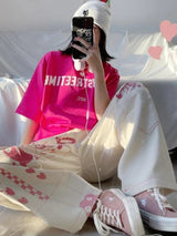 Bring the kawaii aesthetic to your everyday look with these Pink Anime Print Baggy Pants! These oversized pants feature a bold anime-inspired design with adorable heart details, perfect for those who love unique and comfortable fashion.