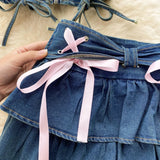 Turn up the kawaii aesthetic with this adorable “Tiny Denim Dancer Outfit Set”! This set features a corset-style denim top and layered shorts that are perfect for adding a touch of fun and flair to your wardrobe.