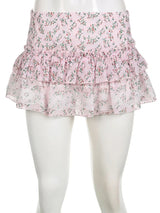 - Design: Adorned with delicate pink floral prints on a soft, pastel base, this skirt radiates a gentle, romantic vibe. The ruffles add a dimensional texture, enhancing its fairy-like appeal.
