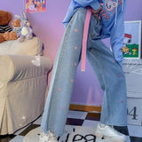 Show off your kawaii side with these cute heart-embroidered jeans! Ideal for any casual day out or chilling with friends.