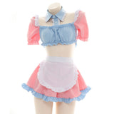 - With a cute ruffled cropped top with button up collar, sweet apron and skirt, with layered of cotton candy ruffles, what's not to love about this super cute maid lingerie set?