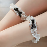 - Made of soft comfortable fabric with a traditional white scalloped collar featuring victorian era crosses, long black sleeves with white cuffs, and matching garter belts - everything you need!