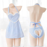 - This precious pink or blue apron inspired dress is made of traditional plaid fabric for a sweet country girl vibe, paired with a heart shaped cutout on the booty! How saucy!