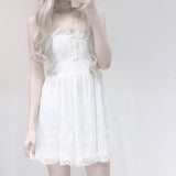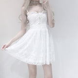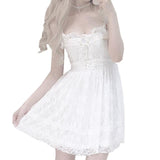 - This magical and ethereal white lace dress has so many beautiful ruffles, bows, and quality lace details, that you'll feel like a floating fairy!