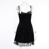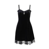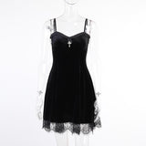 - This dark alternative velvet velour lace trimmed dress oozes dark goddess vibes !