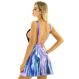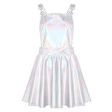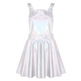 - This stunning vinyl holographic suspender overall jumper dress is a must have for any fashion forward babe with a love for shine and shimmer!