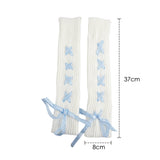 - Design: Adorned with charming lace-up bows that add a sweet and youthful vibe to the leg warmers. The design incorporates delicate ribbing for a snug fit that keeps them securely in place.