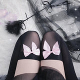 • These sweet white or pink ribbon embellished stockings with a real silky bow at the top are guaranteed to score you endless compliments!
