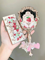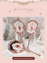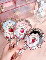 - These glittering strawberry embellished angelic handheld mirrors are high-end luxury.