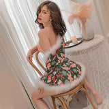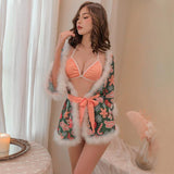 - This festive fur-trimmed luxury bathrobe & matching lingerie set is sure to please all who behold it!