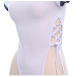 - This outrageously kawaii white and black high slit lace-up bodysuit is spicy, and a little bit retro, baby!