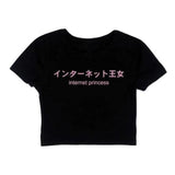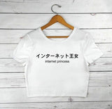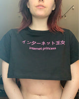 - This adorable black or white cropped belly shirt is perfect for princesses who spend all their time on the internet!
