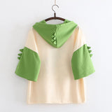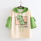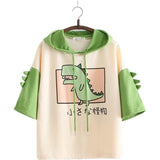 - This adorable dino-green japanese inspired hooded t-shirt will instantly transform you into a harajuku princess!