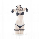 - This cute black & white neko maid cosplay set comes complete with everything you need to embody the true kitten you are: cat ears, arm bands, garters, cat tail panties, and a sweet maid inspired bralette that's truly comfortable to wear!