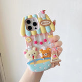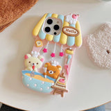 Give your phone a kawaii upgrade with this Kuma Cafe iPhone case, inspired by the cozy world of baking and bears. With soft pastel colors, adorable bear chefs, and a dessert shop theme, this phone case is perfect for fans of Rilakkuma, San-X, and all things cute.