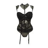 - This gorgeous lingerie set includes everything you see, minus stockings/gloves/whip!