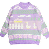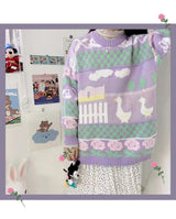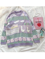 - Featuring an adorable knit vintage pattern featuring little ducks, a farm house, trees, flowers, and checkerboard!