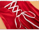 - A Christmas miracle, complete with a sweet matching christmas headband and velvety soft fabric with a lace layered skirt and corset backside.