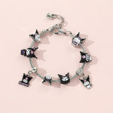 Add a little bit of edgy cuteness to your wrist with this pastel goth Charm Bracelet! This bracelet features a collection of adorable charms, perfect for any fan of this kawaii aesthetic. Each charm showcases a playful yet mischievous side, giving your outfit an extra pop of fun!