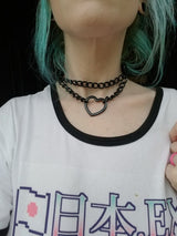 - This gorgeous thick vegan leather chained heart choker necklace has quality black hardware, belted buckle closure, and screams "alt princess"!