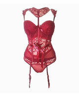- This gorgeous lingerie set includes everything you see, minus stockings!