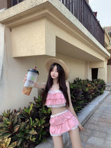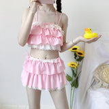 - This ruffled pink princess lingerie set / bathing suit is a must have for any kawaii babe who loves kawaii fashion and cute pink aesthetics, while basking at the beach or by the pool!