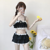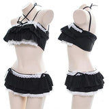 - Made of sweet pink ruffled and layered swimwear fabric that can be worn in the pool safely, or worn as a lingerie / cosplay set!