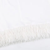 •  With a gorgeous bright white fabric, lace up corsetry along the chest line, and thick fuzzy faux fur trim, what's not to love?