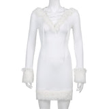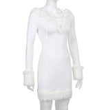 • This sweet long sleeve white fur trimmed sweater dress is a must have for any cozy cute snow princess!