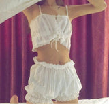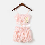 - This sweet pink or white lightweight summer pajama set is perfect for romping around at night while looking adorable!