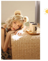 - Choose from pink strawberry bunny ears, or brown baby bear ears!