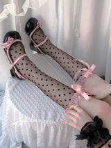 Whether you're dressing up for a special occasion or simply want to add a feminine touch to your everyday look, these lace socks are perfect. The silk texture combined with polkadot details and bow accents create a dreamy, kawaii aesthetic that will make any outfit stand out.