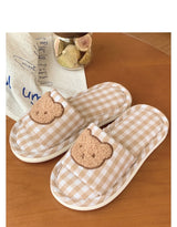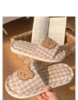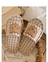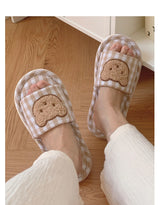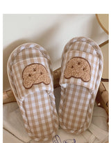 - Featuring a soft and plush teddy bear face on top of brown plaid fabric, these slippers are perfect for all teddy bear lovers out there.
