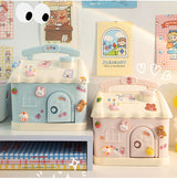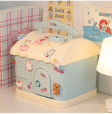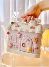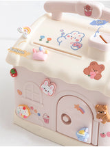 - This little house shaped piggy bank has a chimney that takes coins, and a larger slot that takes full sized bills!