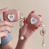 - Chic Design: Each case features a heart-shaped centerpiece adorned with a gold-tone accent, surrounded by a halo of delicate pearls, creating a refined yet cute look.