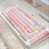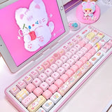 If your keyboard needs a touch of cute, this pink Sweet Kitten Keycaps Set is the perfect way to upgrade your setup. Designed for gamers, streamers, and anyone who loves adorable aesthetics, these keycaps add a soft, pastel look to your keyboard while featuring bunnies, kittens, and sweets for extra cuteness.