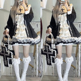 The "Courting The Priest Ruffled Dress" is perfect for those who adore the gothic kawaii aesthetic. With striking details and elegant ruffles, this dress will bring a darkly romantic vibe to your wardrobe.