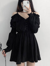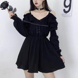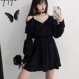 Get ready to embrace your dark side with the Slouchy Goth Dress, perfect for those who love an effortless goth aesthetic with a touch of kawaii flair. This off-shoulder dress is ideal for anyone who adores goth fashion while keeping it comfortable and chic.
