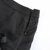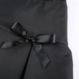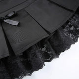 - Made of high quality suede-look fabric with silky black ribbons, and layer of beautiful black lace under chunky pleating!