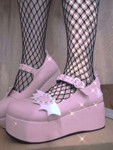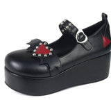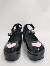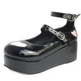 - These badass platform wedge heart-buckle shoes scream "Babydoll"!