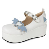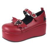 - Winged bat-like studded hearts put these mary jane shoes over the top!