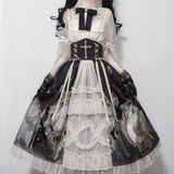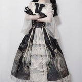 The "Dark Wonderland Dress Set" is a striking blend of gothic elegance and intricate details, perfect for those who adore a gothic and kawaii aesthetic.
