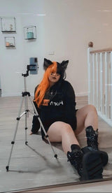 • This stunning orange and black two tone longer length hair cosplay wig combines a sweet fringe with a spooky orange/black halloween gothic aesthetic! A gorgeous combination.